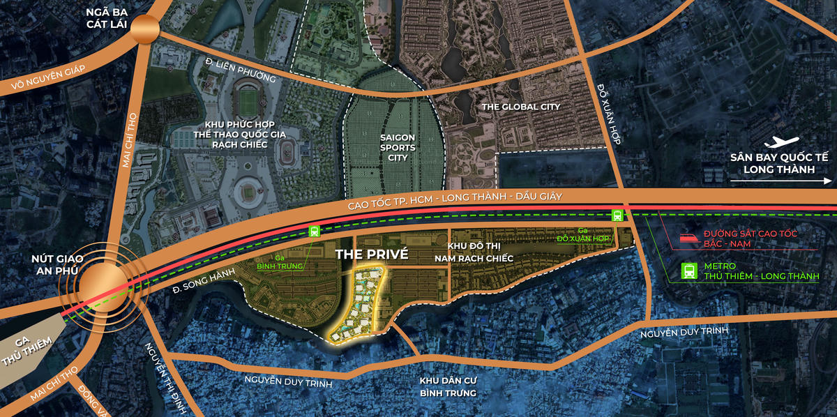 The Privé – kiệt tác căn hộ cao cấp do Tập đoàn Đất Xanh phát triển, tọa lạc tại khu đô thị Nam Rạch Chiếc, phường An Phú, Quận 2, TP. Thủ Đức (nay là Phường Bình Trưng, Tp Hồ Chí Minh). Với thiết kế đột phá từ CPG Consultants (Singapore) và thi công bởi Hòa Bình, dự án mang đến không gian sống tinh tế, kết hợp hài hòa giữa thiên nhiên xanh mát và tiện nghi hiện đại. The Privé là biểu tượng mới của phong cách sống thượng lưu bên dòng sông Sài Gòn.